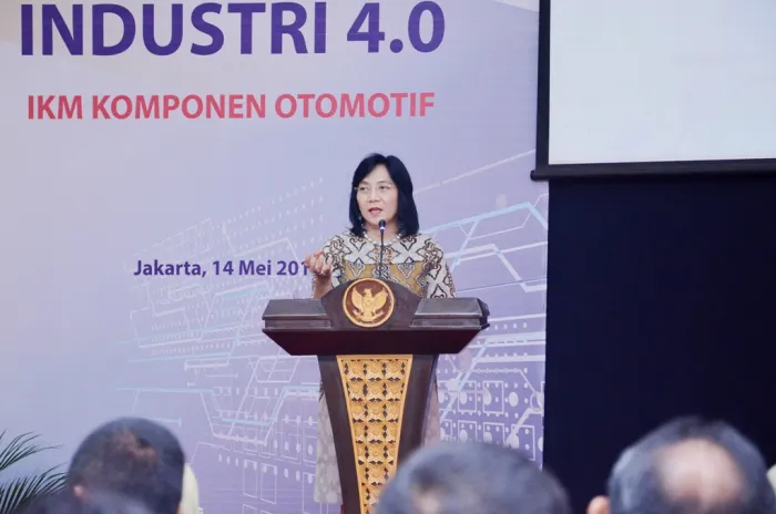 Direktur Jenderal Industri Kecil, Menengah dan Aneka (IKMA) Kemenperin Gati Wibawaningsih saat Workshop Implementasi Industri 4.0 pada IKM Komponen Otomotif di Jakarta, Selasa, (14/5).